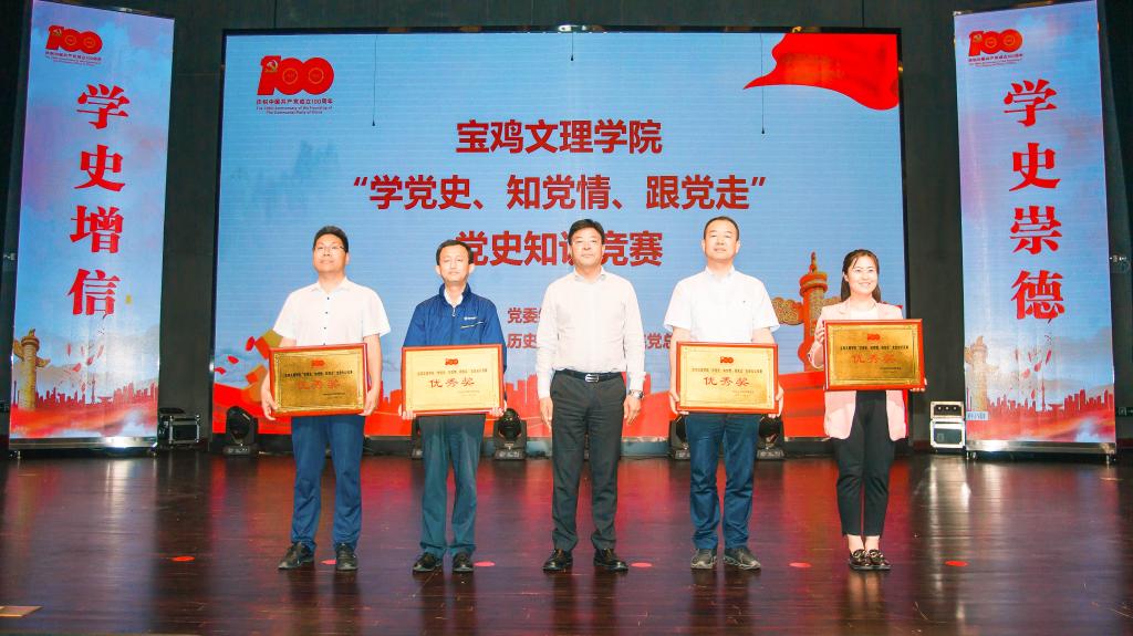 经过激烈角逐,数学与信息科学学院代表队获一等奖,马克思主义学院代表队、图书馆代表队获二等奖,文学与新闻传播学院代表队、体育学院代表队和外国语学院代表队获三等奖,政法学院代表队、美术学院代表队、经济管理学院代表队和后勤管理处(后勤服务集团)代表队获优秀奖。数学与信息科学学院、教育学院和历史文化与旅游学院获优秀组织奖,王瑶等6名同志荣获网络答题优胜个人。校领导为获奖单位和个人颁发了奖牌和证书。