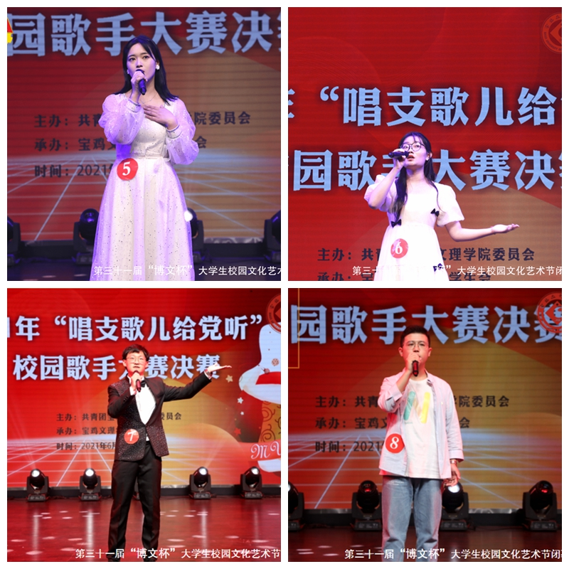 本次歌手大赛经过初赛、预赛的选拔,共有12名选手进入决赛。一首首以歌颂党、歌颂祖国为主题的歌曲,讴歌了中国共产党的百年历史,歌颂了在党的领导下国家所取得的巨大成就。在决赛现场,同学们把对祖国的热爱,对远大理想的追求都融入到铿锵有力的歌声中,用嘹亮的歌声唱出青春力量,展现了新时代大学生精神风貌和人文精神,在学校营造了积极向上、团结奋进的良好校园文化氛围。