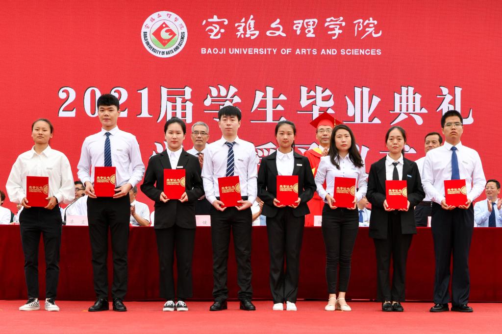 他指出,过去的几年里,2021届毕业生孜孜不倦,刻苦攻读,积极进取,茁壮成长,从求知少年成长为有志青年,从稚嫩走向成熟,由懵懂变得沉稳,为奋进的宝文理增添了一道又一道夺目的光彩!他代表学校衷心感谢同学们为学校发展做出的重要贡献。他强调,此时,同学们即将进入一所名叫“社会”的大学。在那里,没有补考但有淘汰,终身学习却无法毕业,可以躺平但无法躺赢。他向同学们提出四点希望:一是心系家国,做志存高远的人。希望同学们树立远大理想,坚定前进方向,始终保持昂扬的精神状态,以积极的态度应对人生,走好人生中的每一步,把宝文理精神内化于心、外化于行,增强使命感和责任感,为自己代言,为青春代言,为母校代言,接过时代赋予的接力棒,勇担时代使命,以赤子之心为圆心,以青春梦想为半径,在祖国的大地上编制出闪亮耀眼的光圈,在民族复兴的伟大征途中擘画出青春最绚丽的色彩。二是自信自强,做百折不挠的人。希望同学们直面困难,勇于挑战,顽强拼搏,在面对前进道路上的崎岖坎坷时,坚信“办法总比困难多”,从自信自强开始,在困难中磨砺自我,在挑战中愈挫愈勇,在风雨中赢得更加灿烂的明天,收获人生的成功和幸福。三是勤学笃行,做积极向上的人。希望同学们能够树立终身学习的理念,把学习当做一种追求、一种爱好、一种健康的生活方式,始终保持乐学勤学的态度,做到善思好学,夯实自己的知识基础,在不断学习中增长才干、丰富自我、提升素质;同时,希望同学们知行合一,身体力行,勇于实践,始终保持快速高效的执行力,把主要精力放在重要事情上,抓住机遇,迎难而上,全力以赴做好自己该做的事,争取在各自的岗位上做出骄人的业绩。四是常怀感恩,做善良纯真的人。希望同学们常怀感恩之心,长存报恩之情,用自己的所学所长反哺国家和社会,反哺家庭和母校,努力成为一个知恩图报、品德高尚的人。他祝福同学们以梦为马,不惧岁月,不负韶华,前程似锦,仗剑天涯,孤勇归来,仍旧青春奔放!