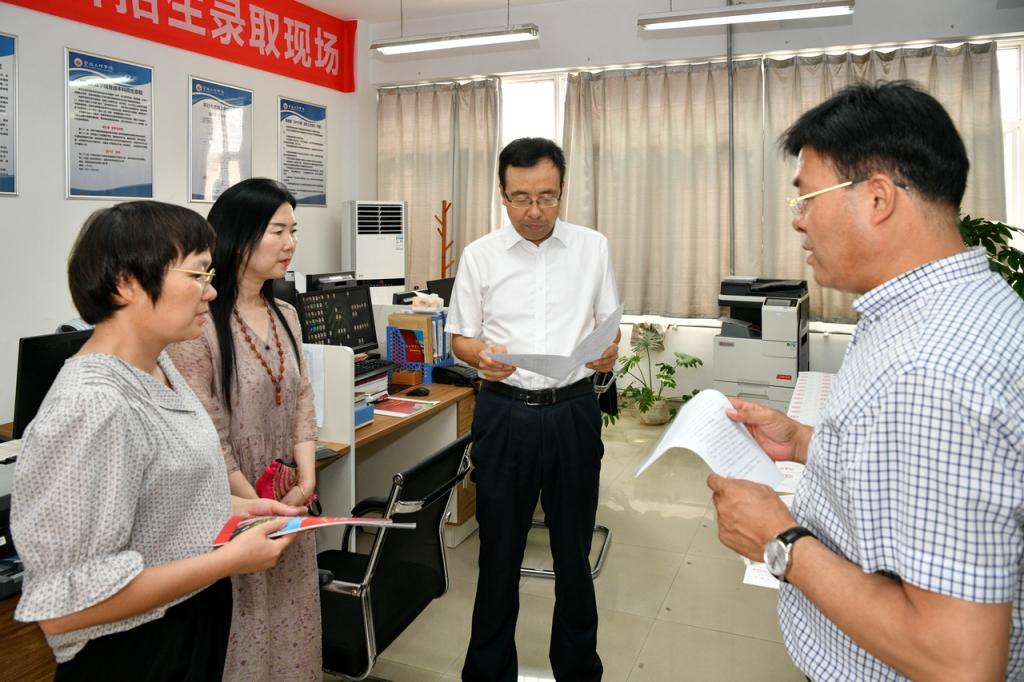 校领导实地查看了招生录取和通知书投递情况,听取了招生工作情况汇报,走访了学生处易班工作室,慰问了辛勤工作的教职员工。