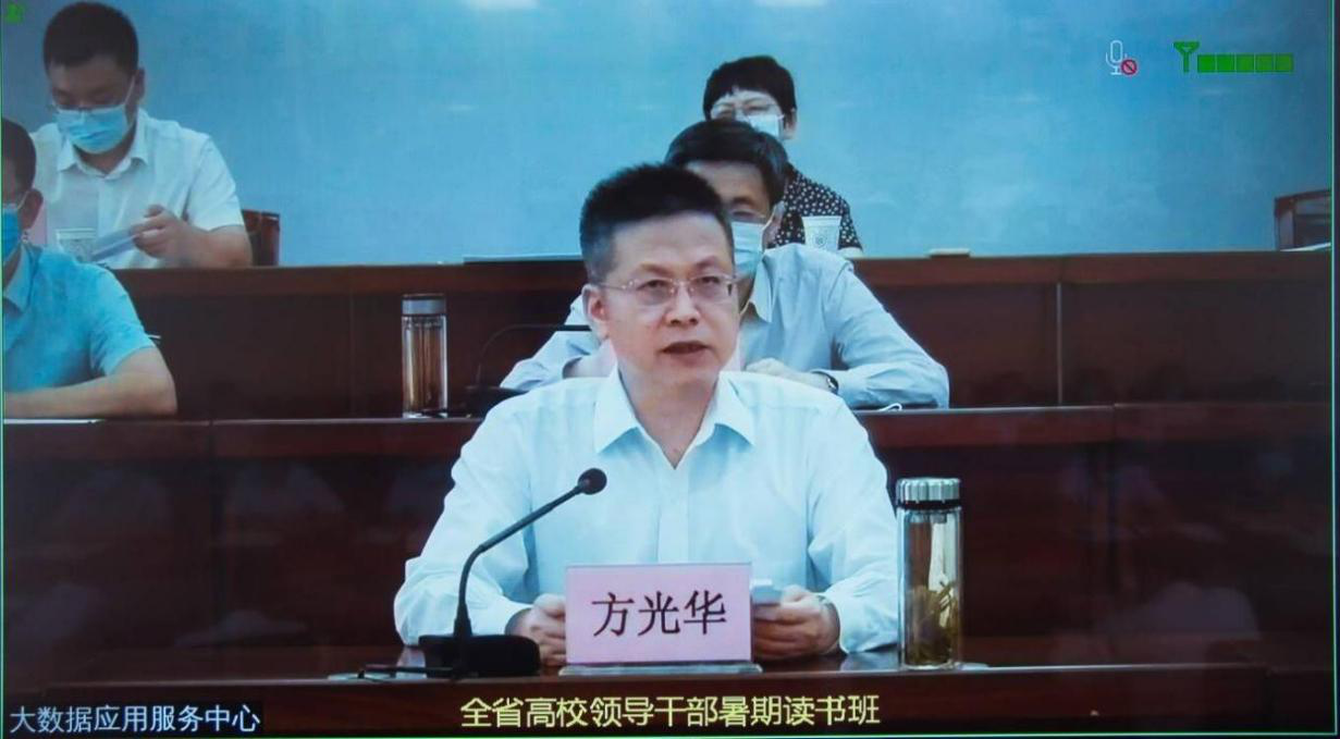 8月25日至26日,按照省委教育工委、省教育厅的统一安排,开元副处级以上领导干部在高新校区图书馆801室和木铎厅以视频会议的形式参加了2021年全省高校领导干部暑期读书班。省委教育工委书记王建利主持开班式、结业式并作总结讲话。