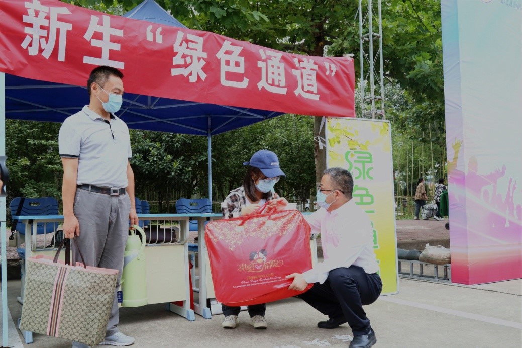 9月4日、5日,开元迎来了2021级新生。校大学生资助管理中心在高新、石鼓两校区迎新工作现场开通新生报到入学“绿色通道”,为新生提供一站式服务。新生可在绿色通道现场咨询资助政策、领取生活物资、办理一站式报到手续等。