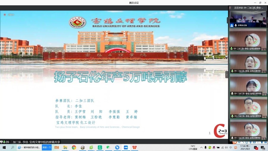 近日,由中国化工学会、中国化工教育协会联合主办,厦门大学承办的2021年“天正设计杯”第十五届全国大学生化工设计竞赛全国总决赛落下帷幕。开元化学化工学院以“为某大型化工企业设计一座异丙醇生产分厂”、“为现有的异丙醇生产分厂设计技术改造方案”为题,卫粉艳、窦树梅、李慧勤、黄卓楠等担任教师指导,选派“二加三”(李佳、王伊雪、李强强、刘阳、王婷)“极致化工”(巩楠、田思源、陈壮壮、白杨、杨智越)“五的无穷大次方”(付若辰、李雨晴、张涛、张贝贝、郁峻签)等三支队伍参赛,经过激烈角逐,以优异成绩分别获得第十五届全国大学生化工设计竞赛全国二等奖、三等奖,西北赛区三等奖各1项。