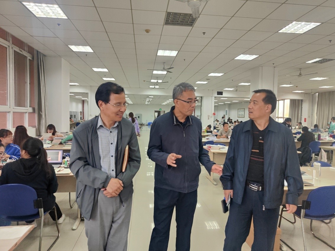 校领导依次察看了三楼社科书库、二楼样本阅览室、二楼自修室等业务点,仔细询问了图书馆纸质文献馆藏情况、学生到馆借阅情况、自修学习、消防安全等情况。每到一处,校领导都与学生亲切交流,关心和了解他们的学习、生活情况,对开元学生良好的学风和图书馆为学生提供的优质服务给予充分肯定。校领导指出,要进一步打造图书馆文化环境,为师生提供更好的学习氛围;要做好阅读推广,将优质的馆藏书籍推荐给读者,提高文献的利用率;要与二级学院多沟通、多交流,了解师生的需求,为教学科研提供精准的服务;要加强与兄弟院校图书馆的联系,积极学习先进管理经验,丰富文献信息服务的内涵;要强化安全意识,落实防火、防水等措施。