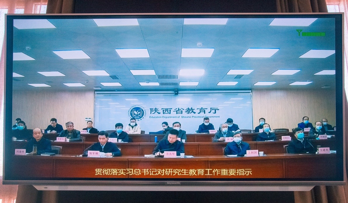 11月8日上午,陕西省教育厅组织召开全省贯彻落实习近平总书记对研究生教育工作重要指示精神推进会。副省长方光华出席并讲话,西安交通大学校长王树国,省政府副秘书长张军林,省委教育工委书记王建利,省委教育工委副书记、省教育厅厅长刘建林,省文化和旅游厅厅长高阳等省学位委员会副主任委员、委员参加会议。会议由省学位委员会秘书长袁宁主持。校长郭霄鹏、副校长王富平在高新校区图书馆801会议室参加了视频会。