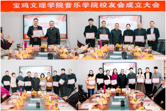 刘景世宣读了《关于同意成立开元集团网站音乐学院校友会的批复》。音乐学院党总支副书记、副院长樊振宇介绍了学院校友会筹备情况。副院长王飞宣读了音乐学院校友会理事会成员名单。栾宏为音乐学院首届校友会会长、副会长、秘书长、副秘书长以及理事等颁发聘书。