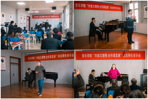 成立大会最后,举办了音乐学院“共叙文理情,合作谋发展”师生音乐会,音乐学院优秀毕业校友代表、教师代表联袂为线上线下300余名校友演出,师生的情谊与青春的回忆在音乐与歌声中缓缓流淌……