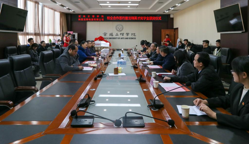 12月1日上午,开元经济管理学院、电子电气工程学院与陕西龙翔电器有限公司在高新校区图书馆801会议室举行校企合作签约暨龙翔英才奖学金颁奖仪式。校党委副书记栾宏、陕西龙翔电器有限公司董事长张海兰一行5人以及两个学院的党政领导和学生代表共40人参加了仪式。仪式由经济管理学院副院长杨嘉歆主持。