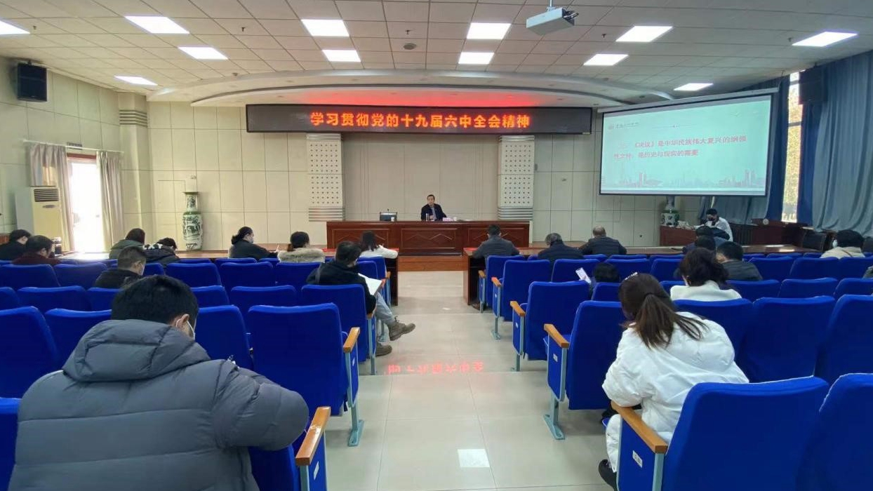 杨子元从党的十九届六中全会召开的重要意义、《中共中央关于党的百年奋斗重大成就和历史经验的决议》(以下简称《决议》)的科学总结性、《决议》提出的历史与现实需要、“两个确立”是《决议》的核心、《决议》总结了百年奋斗的5个历史意义、《决议》总结了中国共产党领导人民进行伟大奋斗积累的宝贵历史经验等六个方面进行了讲解。他强调,深入学习宣传贯彻党的十九届六中全会精神,认真学习、深刻领会《决议》重要内容,是学校近期的重大政治任务。我们要坚决拥护“两个确立”,进一步增强做到“两个维护”的思想自觉、政治自觉、行动自觉,心怀“国之大者”,把握大势,敢于担当,勇于作为。他要求党员教师们把学习贯彻全会精神作为深化党史学习教育的重大任务,持续深入学、融会贯通学、联系实际学,牢牢把握全会的鲜明主题,紧紧围绕党的百年奋斗的主题主线,把深刻理解全会精神的丰富内涵作为深化党史学习教育的主要内容,把全会总结的“十个坚持”“两个确立”有机融入人才培养的全过程,把中华民族的红色基因传给我们下一代,落实好教育工作者“立德树人”的根本任务。