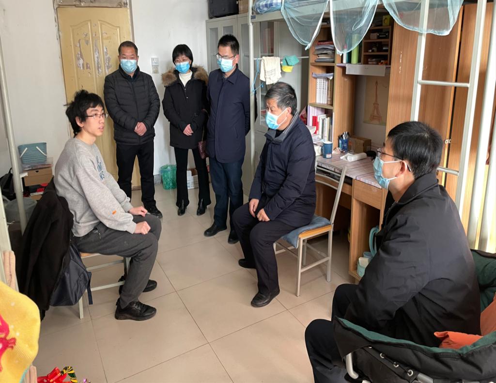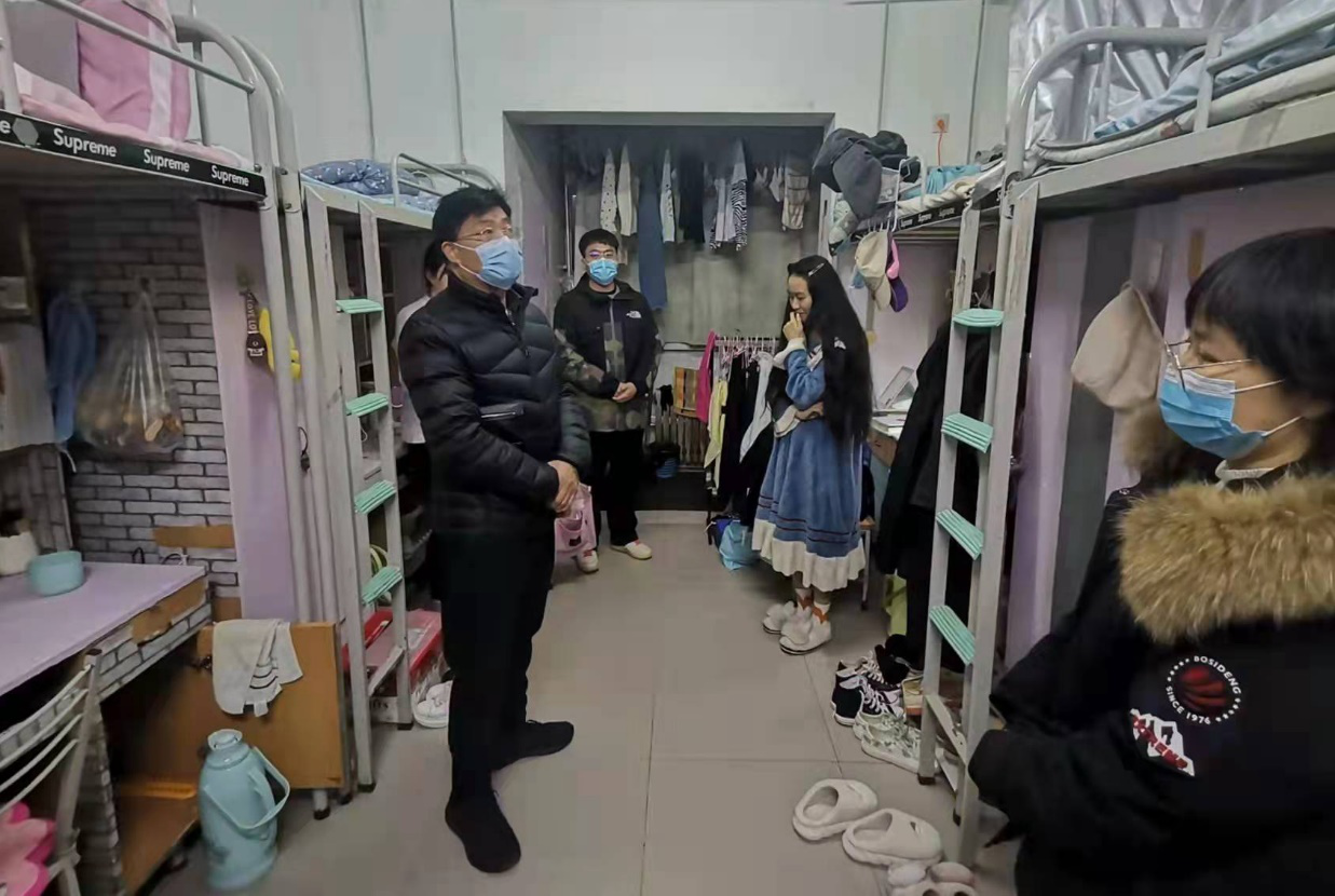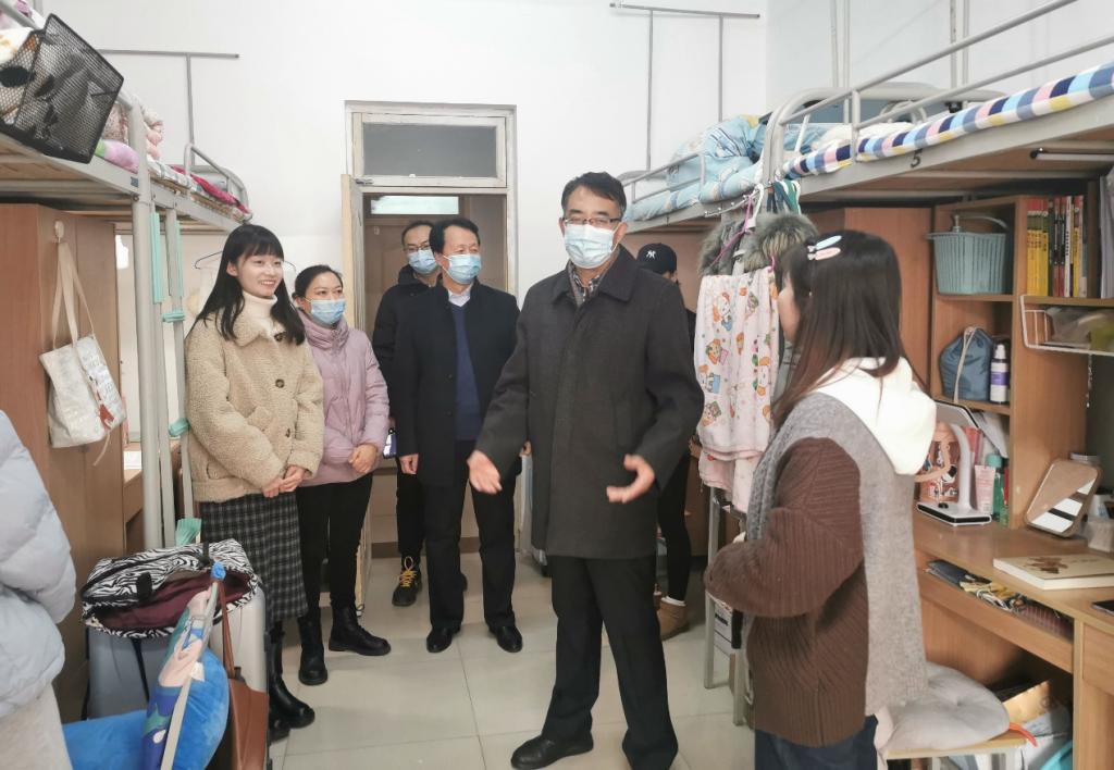 在学生公寓,校领导与同学们亲切交谈,向他们送上新年的祝福,亲切询问了他们的家庭状况、近期的学习生活情况、宿舍供暖、食堂饭菜价格等,嘱咐他们及时向父母报平安。