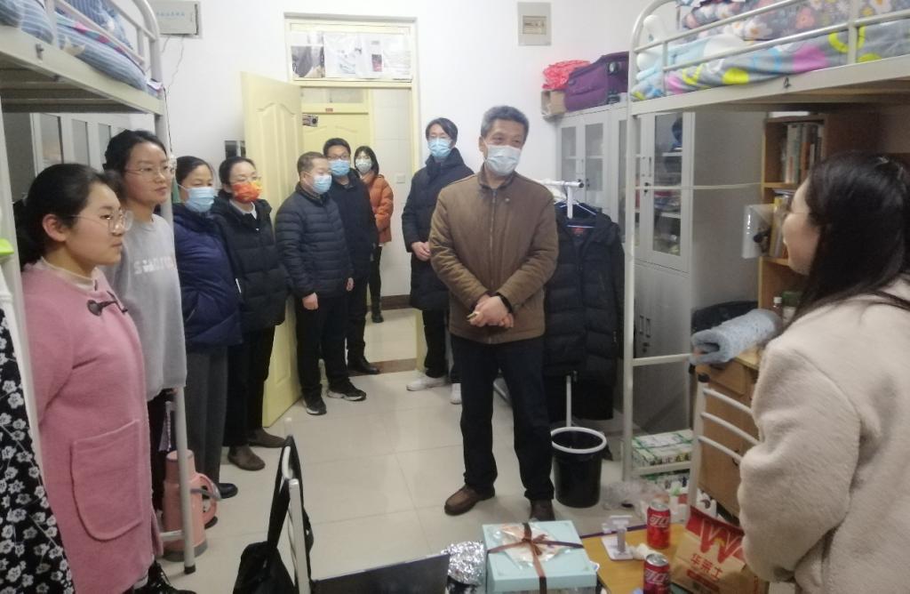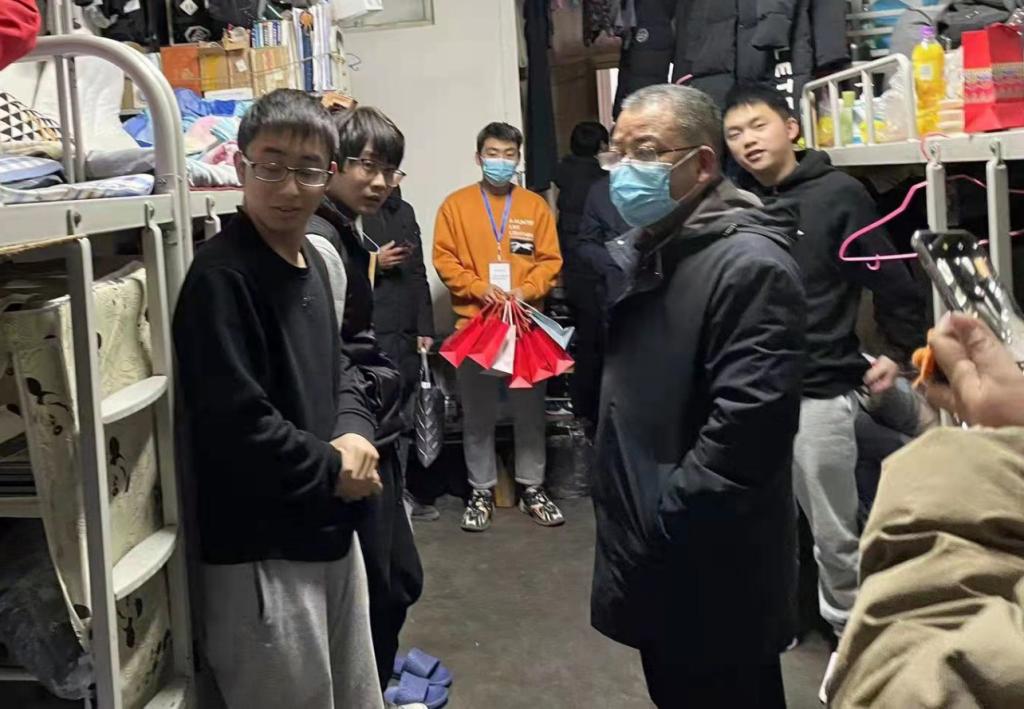 慰问过程中,校领导表示,保障师生生命安全、身体健康和校园安全稳定是学校的头等大事,同学们在抗击疫情的重大考验面前,顾大局、识大体,展现出了开元学子积极、认真、负责的精神面貌。希望同学们积极配合属地政府和学校的防疫工作,不造谣、不信谣、不传谣,不聚集、勤洗手、常消杀,外出佩戴口罩,保持安全社交距离,做好个人健康防护。要合理安排学习时间,加强体育锻炼,遵守疫情防控管理规定,在新的一年中以梦为马、奋发图强,用勤奋和刻苦为青春增色添彩。