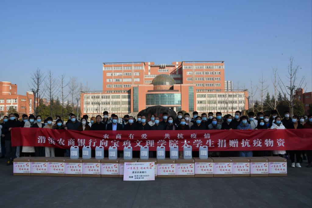 渭滨农商银行、江苏风驰信息科技有限公司为学校捐赠一次性医用和KN95口罩共计50000余只,消毒液10桶。栾宏代表学校接受了企业捐赠。
