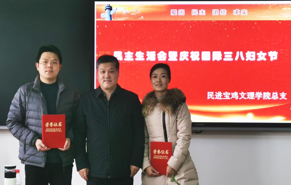 3月3日,民进开元集团网站总支召开2022年民主生活会暨庆祝“三八”国际劳动妇女节活动,副校长王富平应邀出席并为获得2021年度民进宝鸡市委会优秀会员和优秀会务工作者颁发荣誉证书,会议由总支副主委王刚主持。