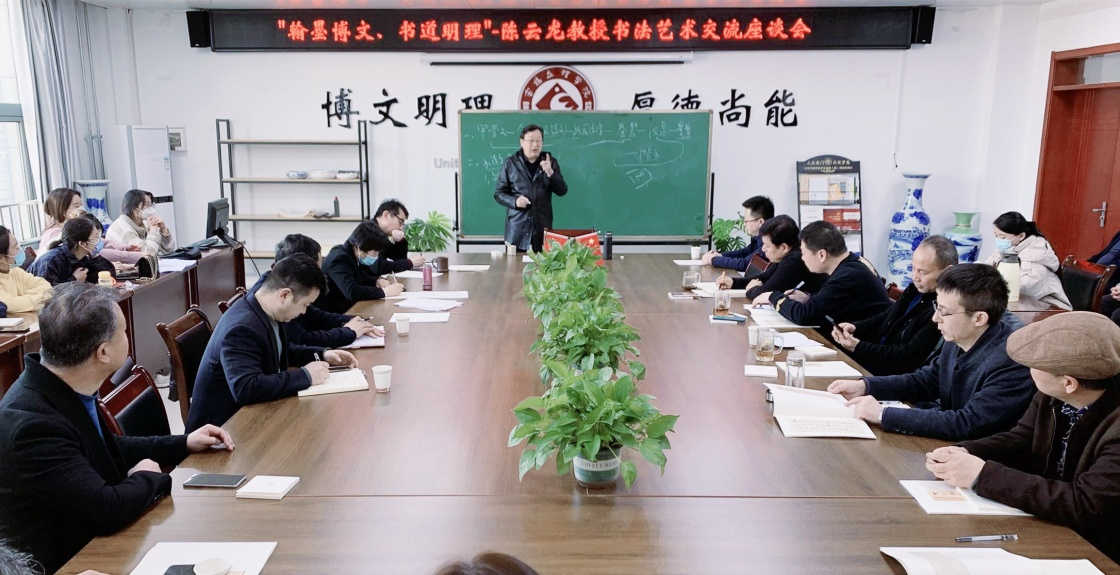 3月7日下午,校党委书记赵健、副校长李景宜会见了陕西省教育书法研究会名誉会长陈云龙教授一行,并围绕书法教育与美育工作进行了深入交谈。陈云龙教授以《翰墨博文、书道明理——陈云龙教授谈书法艺术》为主题作了专题讲座。讲座由美术学院院长李强主持。