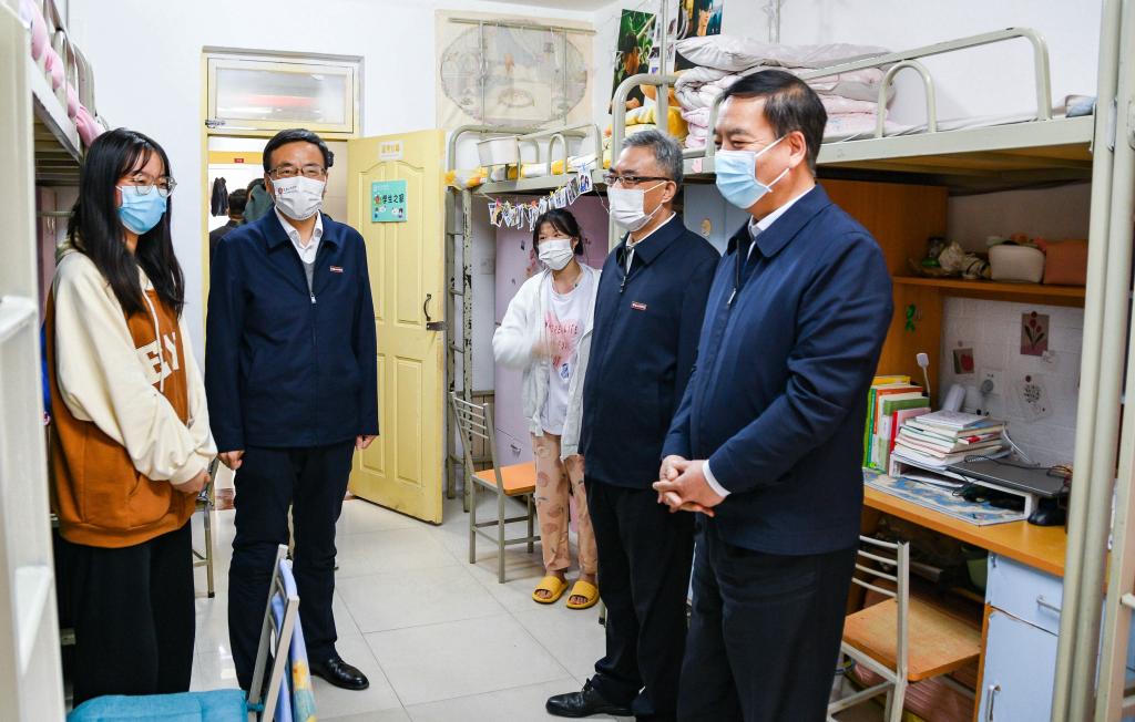 宋德民一行先后前往大学生心理健康教育与咨询中心、学生公寓、校医院、学生食堂、润德园、校史馆等地,了解了学校教育教学、门禁管理、隔离场所、核酸检测、防疫物资储备、师生生活保障等情况。校领导汇报了开元办学历史、办学特色、更名大学和常态化疫情防控等工作。