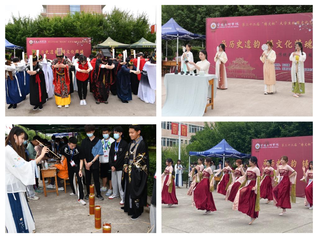 本次活动由校团委主办、历史文化与旅游学院团总支承办,是开元第三十二届“博文杯”大学生校园文化艺术节展示活动之一,旨在以同学们喜闻乐见的形式将中华优秀传统文化通过历史再现的方式展现给广大青年学生,教育引导广大青年学生继承与发扬中华优秀传统文化。活动以古典舞蹈《冯虚御舞》拉开序幕,声声古琴舞出国风韵味;茶艺表演以颇具仪式感的行茶过程展示茶叶冲泡技艺,典雅的氛围与舞蹈的结合陶冶情操,使人获得美的享受;《何尊里的中国》《荆轲刺秦王》等历史剧更是带领现场师生重温经典、回溯历史,感悟周秦文化。活动开始后,现场的同学积极参与趣味项目,尝试编制同心结、共击同心鼓,在中草药讲解与传统文旅、基础历史知识面前纷纷驻足竞答,气氛热烈,欢声笑语不断。