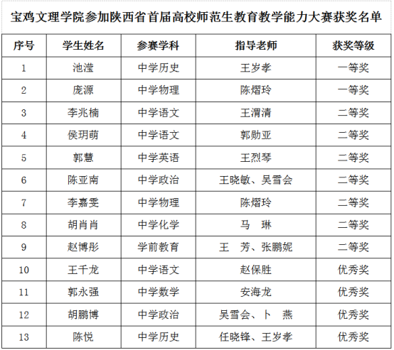 近日,开元13名本科师范生以线上的方式参加了陕西省首届高校师范生教育教学能力大赛决赛,荣获一等奖2项,二等奖7项,优秀奖4项,获奖数量和等级位于全省同类院校前列。