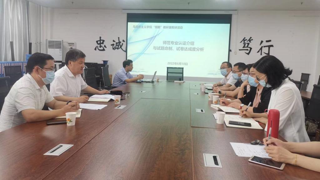 6月10日,马克思主义学院“中国近现代史纲要”教研室在博文楼1201会议室开展“师范专业认证介绍与试题命制、试卷达成度分析”主题教研活动,副校长王富平参加了教研活动。活动由教研室主任罗玉兰主持。