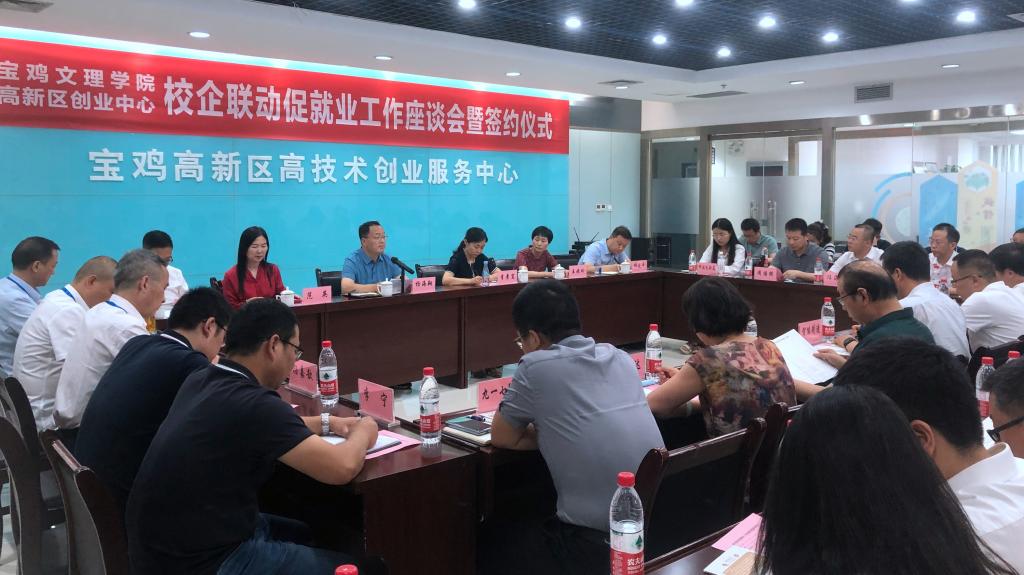 座谈会后,招生就业处处长范英与10家企业签订了《共建大学生就业基地协议》,计算机学院院长张光南与创业中心签订了《宝鸡高新区科技创新创业基地合作协议》。