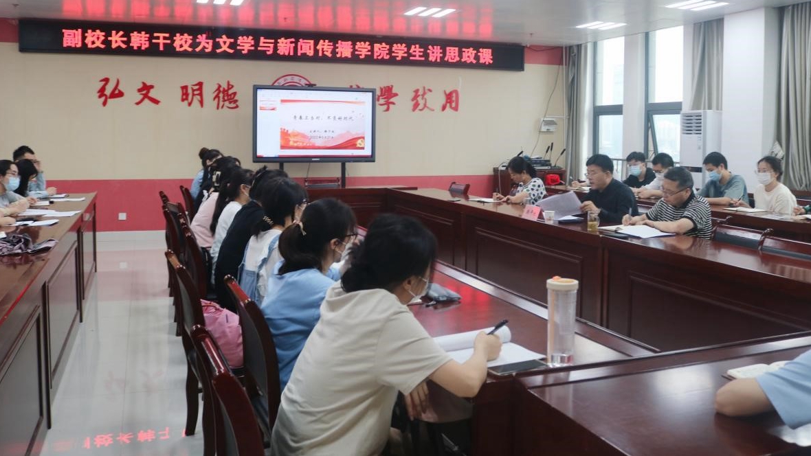 6月21日下午,副校长韩干校在高新校区博文楼1401会议室为文学与新闻传播学院学生讲授专题思政课。