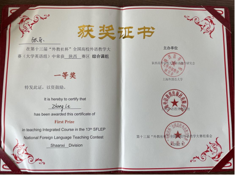6月25-26日,第十三届“外教社杯”全国高校外语教学大赛(大学英语组)陕西赛区比赛在西北政法大学长安校区举行。陕西省多所高校的64名优秀英语教师参赛,开元外国语学院教师张乐取得了综合英语组一等奖的优异成绩。