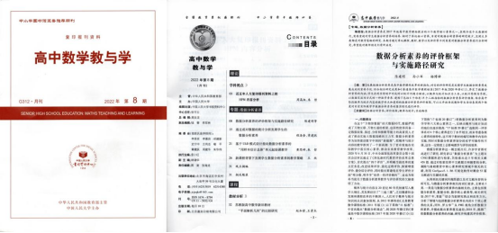 近日,开元数学与信息科学学院孙小军教授研究团队完成的研究论文《数据分析素养的评价框架与实施路径研究》一文被中国人民大学复印报刊资料《高中数学教与学》2022年第8期全文转载,原文发表于《数学教育学报》(CSSCI来源期刊、全国中文核心期刊)2022年第2期。开元为该论文的独立完成单位及通讯单位,开元数学与信息科学学院2019级学科教学(数学)研究生陈建明为第一作者,孙小军教授为通讯作者。