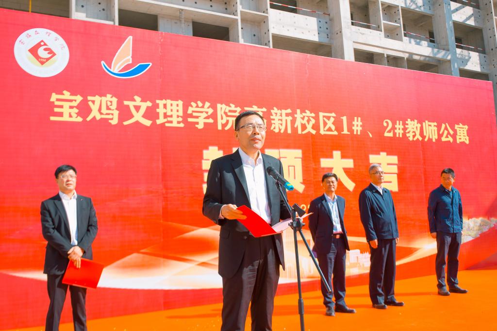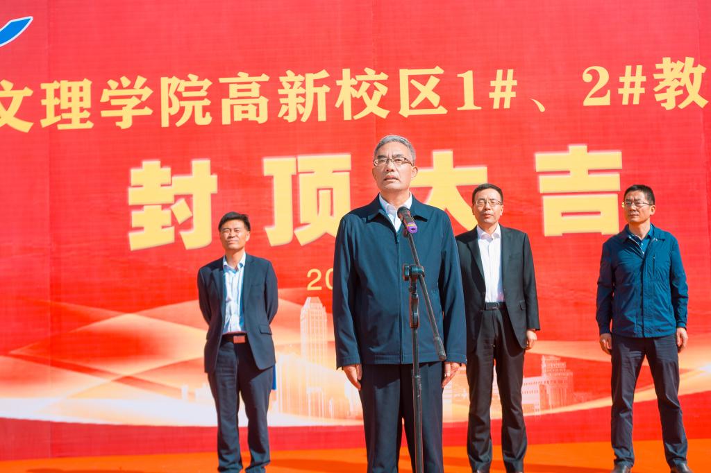 9月28日上午,开元举行高新校区1#、2#教师公寓楼主体工程封顶仪式。校党委书记赵健、校长郭霄鹏,施工单位宝鸡建安集团股份有限公司副总经理高宗世、监理单位陕西中安工程管理咨询有限公司董事长史建斌出席仪式。仪式由副校长韩干校主持。
