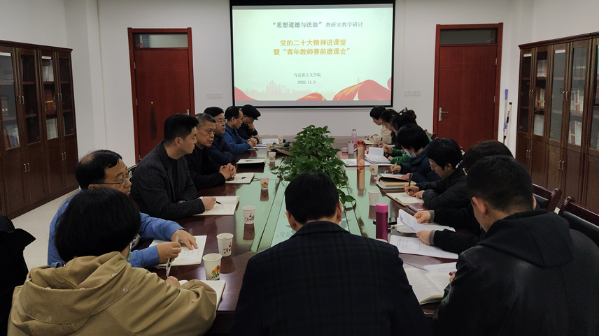 11月9日下午,马克思主义学院“思想道德与法治”教研室开展“党的二十大精神进课堂集体备课会暨青年教师教学比赛磨课会”教研活动,校党委副书记、纪委书记、监察专员段恒春,副校长韩干校参加并指导教研活动。活动由教研室主任黄亚娟主持。