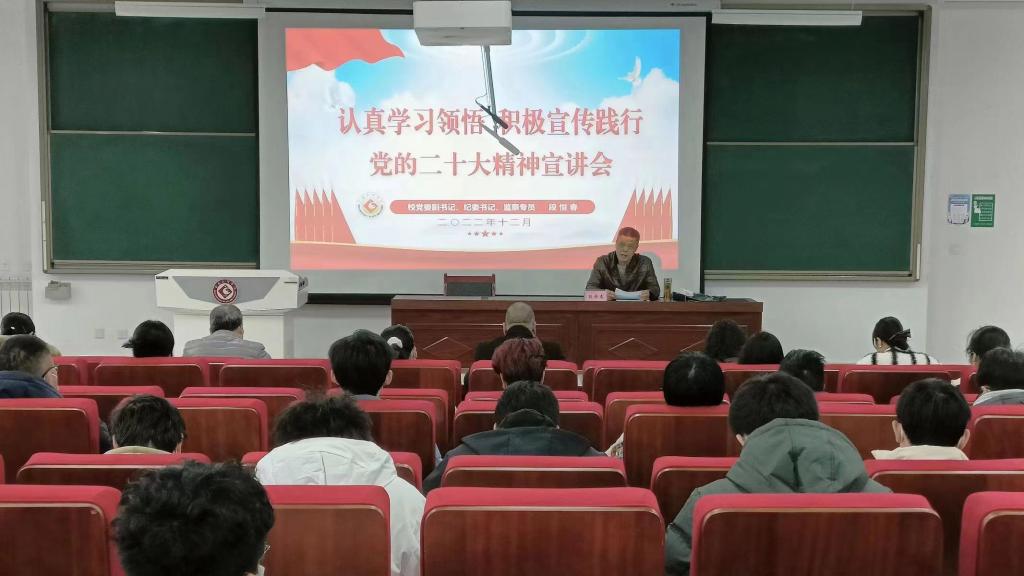 段恒春从充分认识学习宣传贯彻党的二十大的重大意义、全面准确理解党的二十大精神核心要义、高校要成为学习宣传落实党的二十大精神主阵地等3个方面深入归纳阐释了党的二十大报告的主要精神。指出党的二十大是一次高举旗帜、凝聚力量、团结奋进的大会,事关党和国家事业继往开来,事关中国特色社会主义前途命运,事关中华民族伟大复兴。要扎实开展学习贯彻党的二十大精神战略谋划工作,着力将党的二十大作出的重大战略部署细化为举措、实化为行动,加快推进教育现代化、建设教育强国、办好人民满意的教育,为全面建设社会主义现代化国家、全面推进中华民族伟大复兴贡献不竭的教育力量。