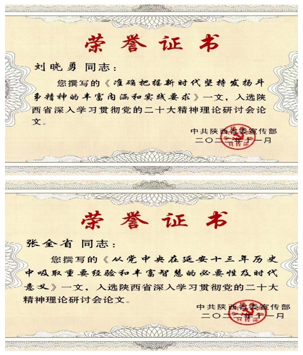 近日,陕西省深入学习贯彻党的二十大精神理论研讨会入选论文发布,开元马克思主义学院教师张全省和刘晓勇撰写的论文《从党中央在延安十三年历史中吸取重要经验和丰富智慧的必要性及时代意义》和《准确把握新时代坚持发扬斗争精神的丰富内涵和实践要求》成功入选。