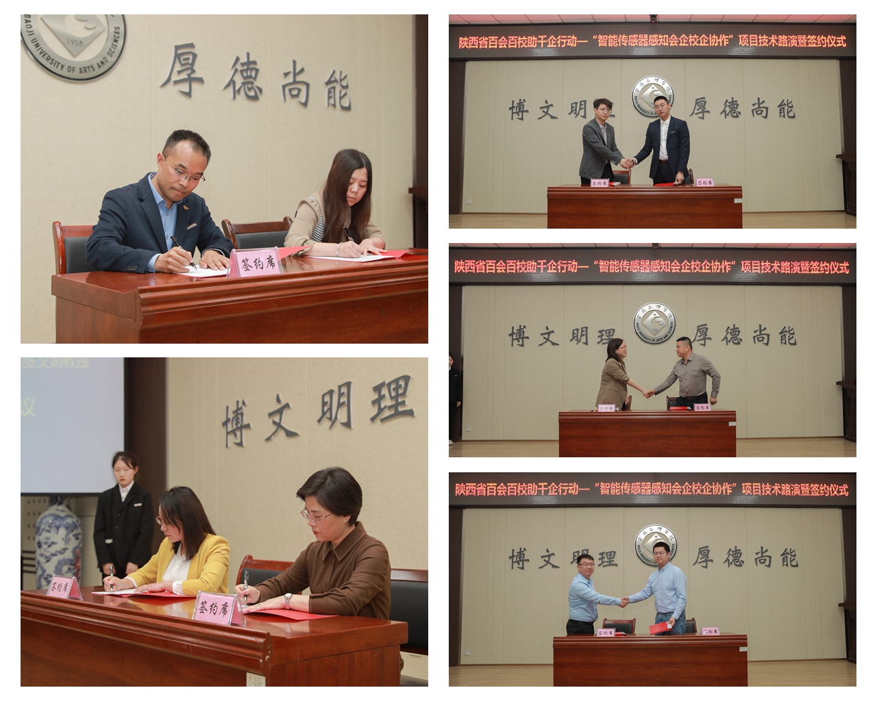 学校与宝鸡拓普达钛业有限公司、爱罗巴铸造技术(陕西)有限公司、陕西宝科信创智能科技有限公司、西安新翼望数字科技有限公司、陕西恺洲信息技术有限公司等5家企业就项目技术委托、人才培训、成果转化、人才联合培养等签订了合作协议。