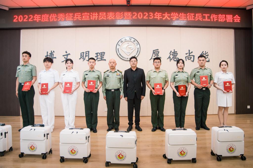 党政办公室、党委宣传部、党委学生工作部、教务处等相关部门负责人分别宣读了2022年度优秀征兵宣讲员表彰暨2023年大学生征兵工作部署会的有关通知和文件。优秀征兵宣讲员代表和2023年征兵宣讲员代表分享了自己参军入伍的收获并就做好征兵宣讲工作作了表态发言。