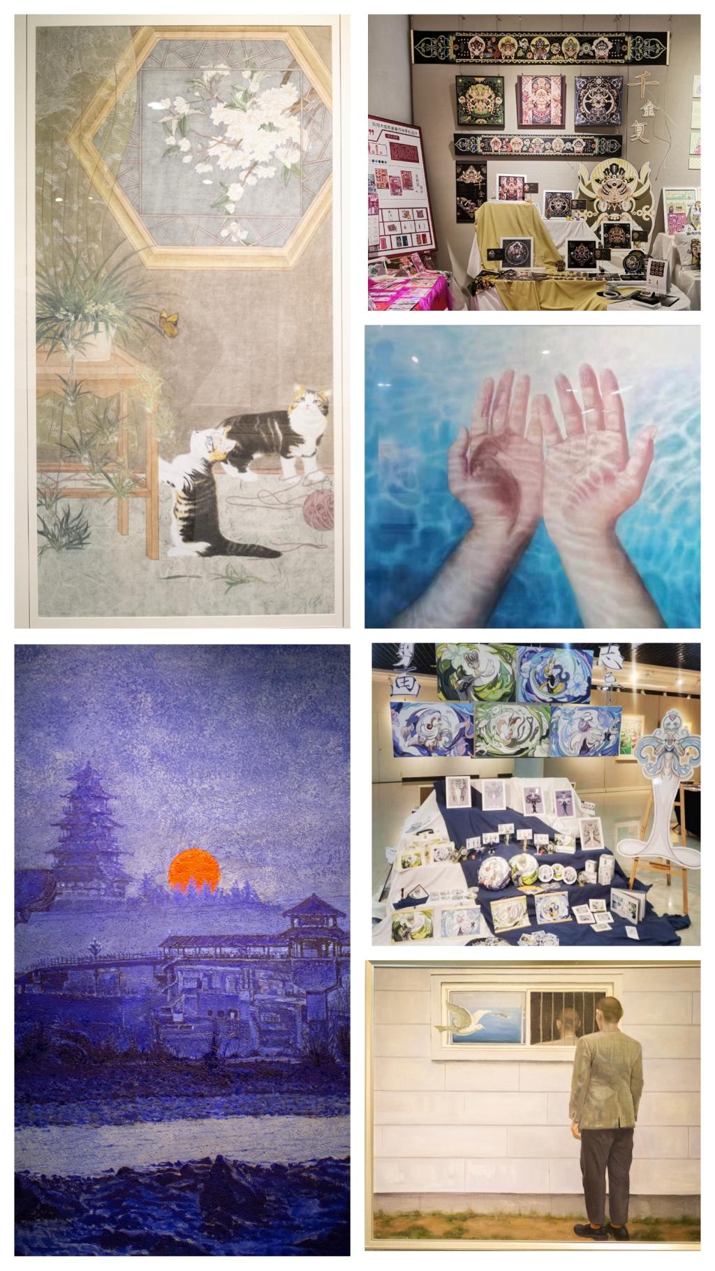 本次展览将持续到6月15日,共展出118件(组)作品,其中包括美术学专业的中国画作品31件、油画及版画作品20件、水彩画作品12件;视觉传达设计专业作品28组;环境艺术设计专业作品13组;服装设计14组件。展出的绘画作品紧扣时代主题,内容积极向上、立意新颖,通过多样的形式与绘画语言表达了对社会生活的关注和审美追求;设计各专业的作品,把握图像化、信息化的时代脉搏,贴近时代与社会的需要,着眼优秀传统文化的创造性转化与开发,以多媒介形式体现出当代年青的创新意识,展陈形式丰富多样、独具匠心。