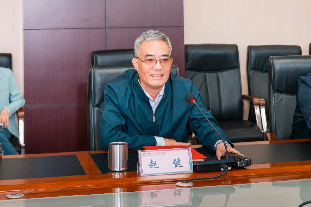 赵健代表学校全体师生致答谢辞。他简要介绍了学校发展情况,对西安翻译学院慷慨捐赠4万余册图书表示感谢。他指出,书籍是人类进步的阶梯,图书馆是大学的文化高地,图书捐赠是分享知识、泽被后世的善举,此次捐赠图书是两校师生深厚情谊的历史见证,每一册书籍都将助力文理学子成长成才。他表示,西安翻译学院在学科建设、对外宣传、招生就业等方面有许多值得开元学习和借鉴的经验,希望两校以此次图书捐赠为契机,继续加强交流,拓宽合作路径,共同谱写我省高等教育高质量发展新篇章。