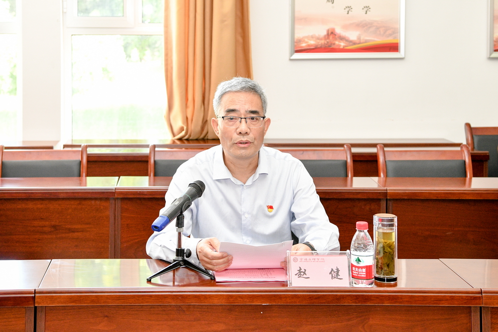 赵健谈了学习体会,并就进一步开展好主题教育提出四点要求:一是筑牢政治忠诚,用真心上好“信仰课”。全校党员干部要学懂弄通做实习近平新时代中国特色社会主义思想,做马克思主义坚定信仰者、忠实践行者,在推动工作中坚守信仰、净化心灵,在真学真信、常学常新中夯实信仰之基。二是提升能力本领,用真绩上好“专业课”。党员干部要始终将学习作为提高本领的助推器,不断学习完善自己,熟悉掌握工作细节,提高工作本领,在面对各种困难矛盾时勇挑重担。三是树牢底线思维,用真情上好“廉洁课”。党员干部要提高抵御各种风险和经受住各种考验的能力,加强道德修养,遵守师德底线和红线,讲党性、重品行、作表率,一心为公、坦荡做人。四是提振干事创业信心,用真本领上好“实干课”。学校的进步发展是全体师生一道拼出来、干出来、奋斗出来的,要通过主题教育充分调动起党员干部干事创业的积极性,把学习成效转化为推动工作的强大力量,不断推动学校各项事业向前发展。