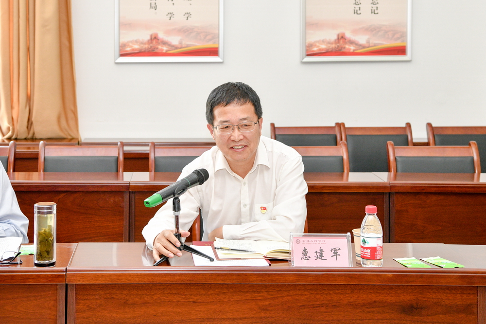 惠建军代表省委第十巡回指导组作了讲话,对开元主题教育工作给予了充分肯定。他指出,学校党委对主题教育工作高度重视,主题教育领导小组办公室工作组织有序,主题教育内容丰富、形式多样、措施有力、成效明显。对开元进一步开展好主题教育提出两点希望:一要持续抓好理论学习,确保入脑入心;二要持续抓好调查研究和问题整改,确保取得实效。