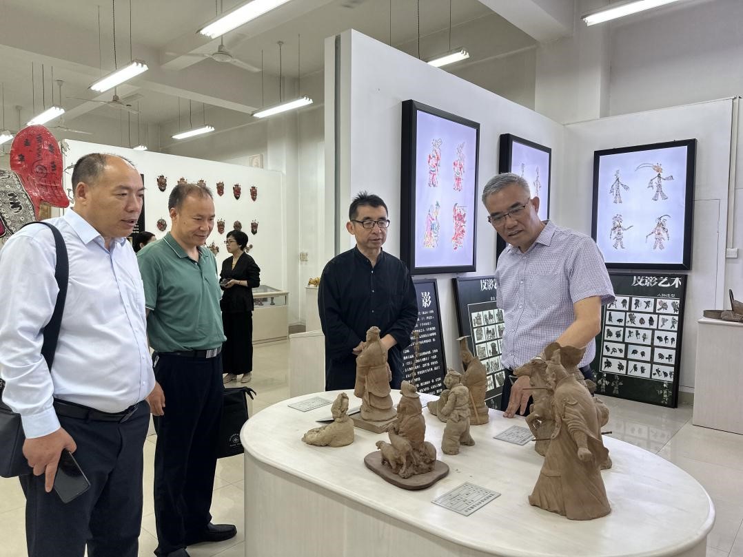 座谈会前,徐引正一行参观了开元宝鸡民间美术展厅,美术学院院长李强介绍了展陈的具有宝鸡地方特色的民间美术作品。
