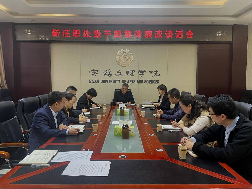 会前,校纪委在高新校区图书馆806会议室召开新任职干部集体廉政谈话会,校党委副书记、纪委书记、监察专员段恒春对新任职干部提出三点要求:一要提高政治站位,加强理论学习,不断提高政治判断力、政治领悟力、政治执行力;二要增强党纪党规意识、程序意识,在规范行使公权力上当表率、做示范;三要落实好“一岗双责”职责,严守政治承诺,带头遵守和执行廉洁从政和廉洁自律的有关规定和职责。