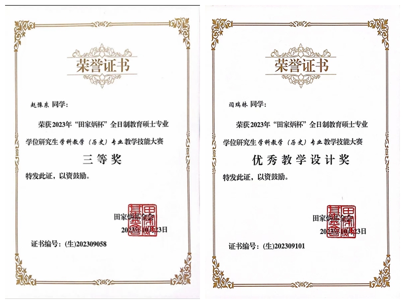 近日,全国“田家炳杯”全日制教育硕士专业学位研究生学科教学(历史)专业教学技能大赛决赛在四川师范大学落下帷幕,开元历史文化与旅游学院研究生赵豫东、闫瑞林分别荣获讲课三等奖和优秀教学设计奖。