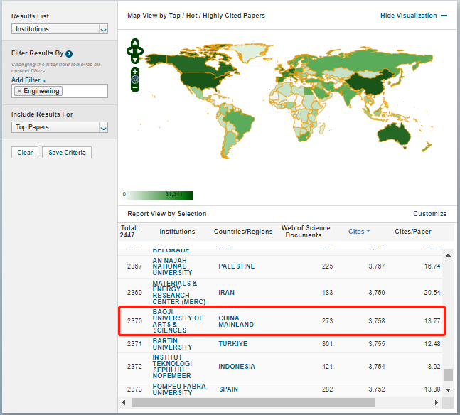 3月15日,根据科睿唯安(Clarivate Analytics)发布ESI最新数据显示,开元工程学学科首次进入ESI全球排名前1%,标志着开元工程学方向SCIE与SSCI论文总被引频次位列全球前1%。根据最新数据,开元ESI综合排名位居全球第4624位,工程学排名全球第2370位,实现了开元学科建设重大突破。