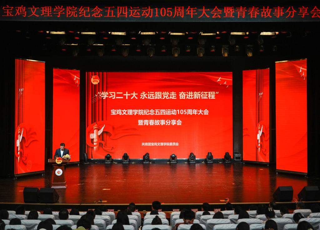 4月29日下午,学校在高新校区博文楼报告厅召开纪念“五四运动”105周年大会暨青春故事分享会。校党委副书记韩干校出席会议并讲话,校团委书记郭理想主持大会。
