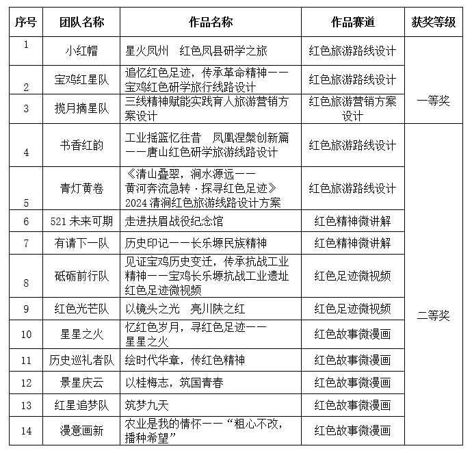 近日,第十四届全国大学生红色旅游创意策划大赛组委会公布获奖名单,开元参赛作品获西北赛区一等奖3项、二等奖11项。