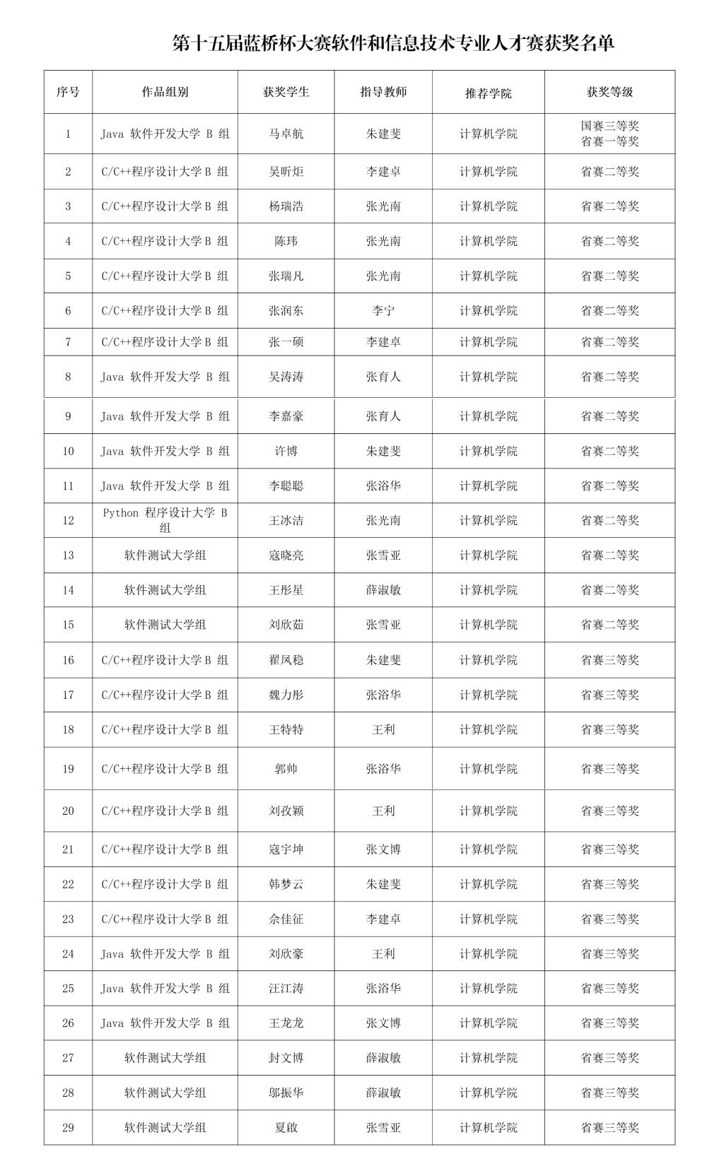 学校长期坚持实践教学改革,鼓励师生在竞赛实践中将课堂知识转化为应用技能,锻炼学生的专业实践能力。本次大赛成绩的取得体现了学校坚持以学科竞赛为抓手,以赛促教、以赛促改、以赛促学、以赛促创的教学成效。(教务处、研究生院、计算机学院 文/李建鹏、彭静、朱建斐 审核/王参军、张光南)
