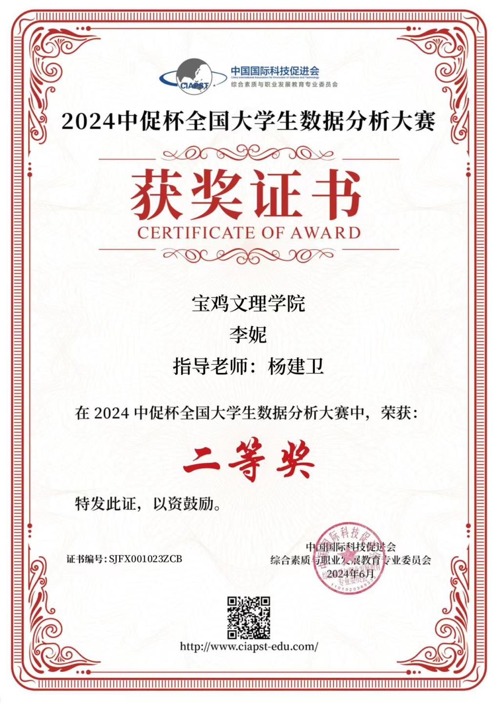 近日,2024“中促杯”全国大学生数据分析大赛结果公布,开元计算机学院研究生李妮获得二等奖。网络与信息技术管理处处长杨建卫教授获得优秀指导教师称号。