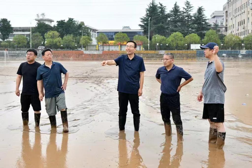 学校领导高度重视,科学决策一线指挥。灾情发生后,学校党委密切关注汛情变化,立即成立防汛抢险救灾工作专班,校党委书记赵健、校长郭霄鹏、副校长于建伟和有关部门负责人第一时间赶赴现场查看险情,看望慰问在校师生,详细询问受灾情况,并对防汛抢险救灾工作作出安排部署。在仔细勘察灾情、全面摸清受灾底数的情况下,学校领导一线指挥,科学决策施救工作,党政办公室、后勤管理处、保卫处等专班组成部门周密制定方案,合理编组人员,明确任务区域,全面做好险情排查、师生转运安置和灾后校园秩序恢复重建工作。