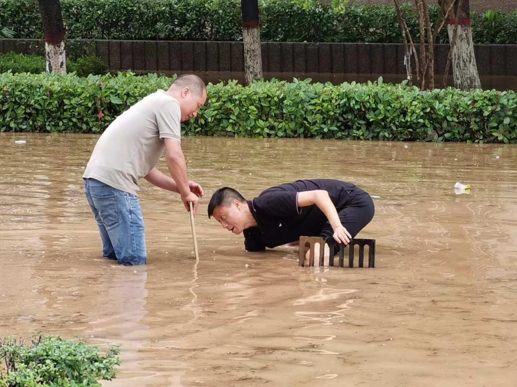 抢抓时间组织清淤,尽快恢复校园秩序。鉴于近日多雨、汛情形势依然严峻,为避免校园二次受灾,学校向全校党员、干部和师生员工发出倡议,动员大家积极投入石鼓校区清淤大会战。各二级学院党委、党总支积极发挥战斗堡垒作用,组织在校师生员工及家属排水清淤,大家以“汛”为令,闻“汛”而动,不畏酷暑,干劲十足,连续奋战,校园呈现了一幕幕与灾情抗击、与淤泥斗争的感人场面,充分彰显了文理人团结一心、迎难而上、爱校如家的精神风貌和高尚情怀。许多学生自觉返校忘我劳动,把救灾现场变成了一堂感人至深、生动难忘的“爱校课”“思政课”和“劳动教育课”。经过几天连续奋战,截至7月24日18时,石鼓校区主干道路、图书馆四周、学生公寓和家属楼周边道路以及操场淤泥基本清理干净,餐厅外围等区域正在紧张清理当中。