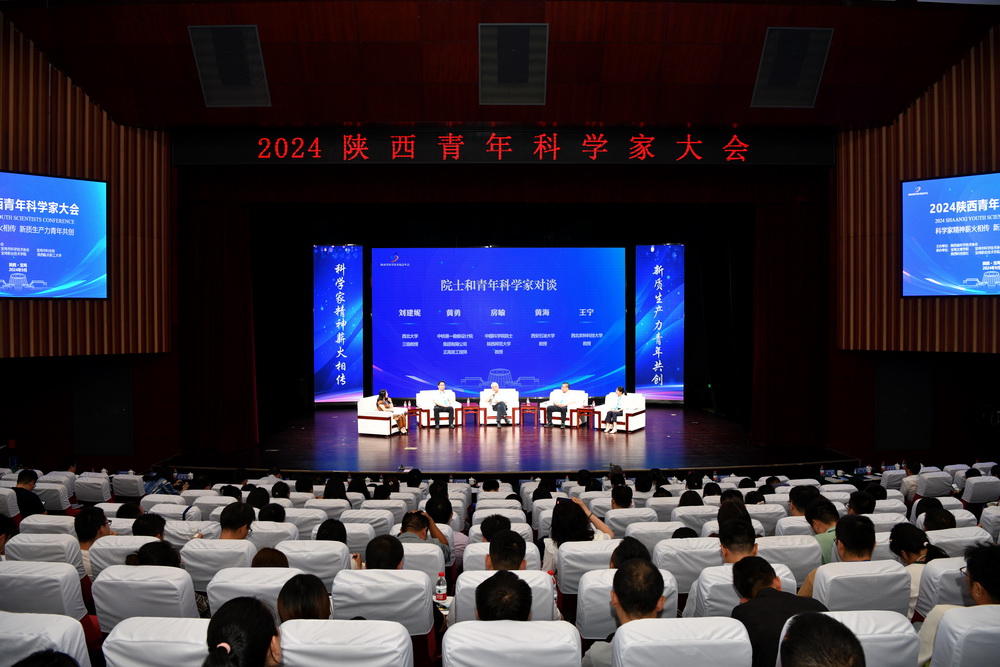 对谈交流环节,房喻,国家重点研发计划首席科学家、西北大学刘建妮教授,第十八届中国青年科技奖陕西省候选人、中铁第一勘察设计院集团有限公司黄勇正高级工程师,第十四届陕西青年科技奖获得者、西安石油大学黄海教授,第八届未来女科学家计划入选者、西北农林科技大学王宁教授5位院士专家围绕服务高质量发展、合作创新、培养机制、发挥决策咨询作用、科研压力与研究困惑等方面进行了对谈交流。西北大学刘建妮教授客串主持。