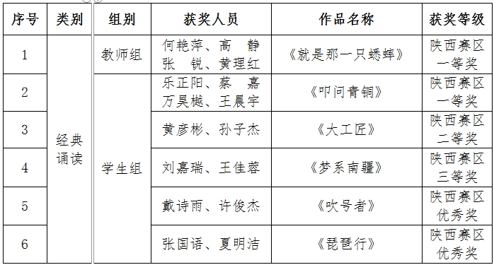 近日,陕西省教育厅办公室公布了第六届中华经典诵写讲大赛(陕西赛区)评选结果,开元在“诵读中国”经典诵读大赛中,教师组获一等奖1项;学生组获一、二、三等奖各1项,优秀奖2项。文学与新闻传播学院教师王应龙、何艳萍获“优秀指导教师”称号。
