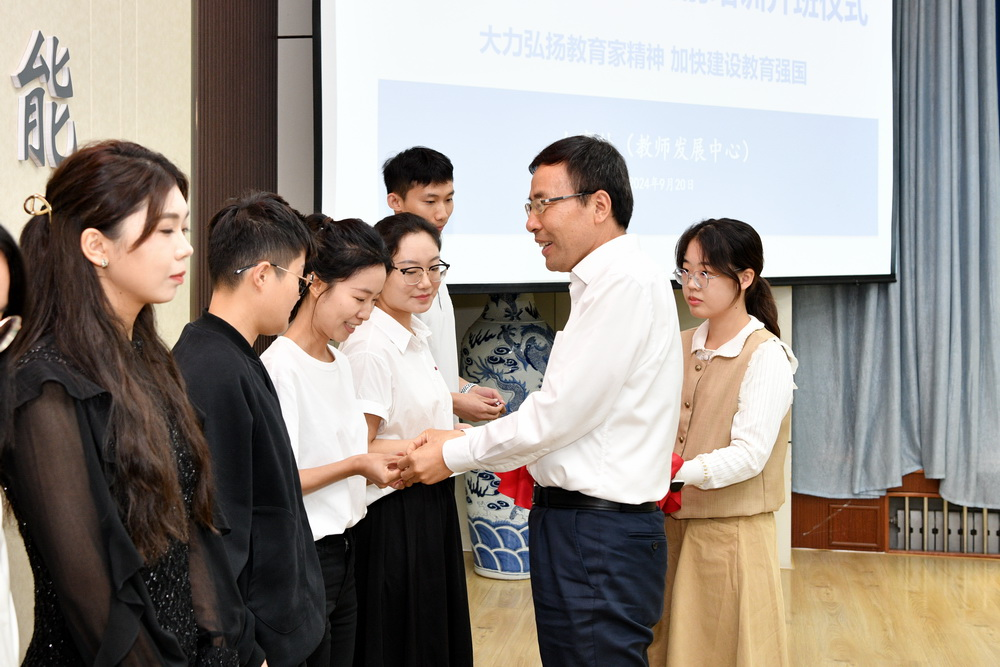 9月20日上午,学校在高新校区甘棠厅召开以“大力弘扬教育家精神,加快建设教育强国”为主题的2024年新进教师岗前培训开班仪式。校党委书记赵健、校长郭霄鹏、副校长冯飞龙,宝鸡市委组织部副部长富锦峰出席开班仪式。
