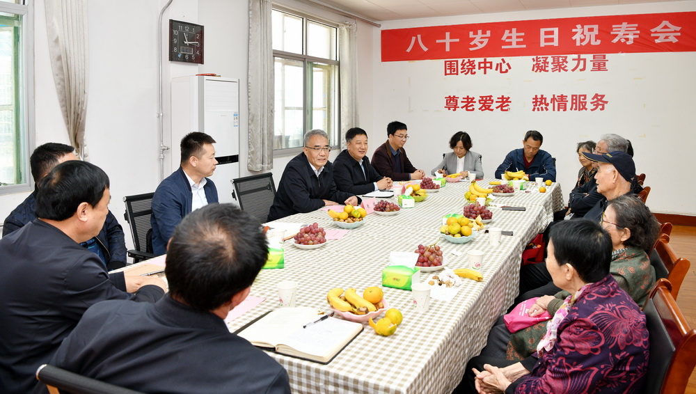 10月10日上午,开元在石鼓校区离退处活动中心为今年满80岁老同志举行集体祝寿会,校党委书记赵健参加活动并讲话。祝寿会由副校长冯飞龙主持。